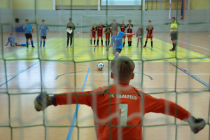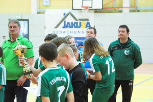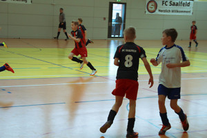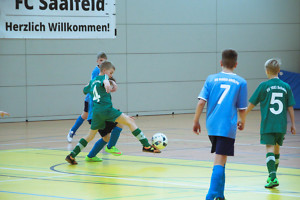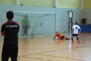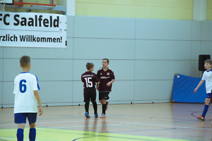 Nach der kurzfristigen Absage von Blankenhain, stellte der FC 3 Teams ab den Start. Weitere Teilnehmer waren Vertreter aus Unterwellenborn, Bodelwitz, Stadtilm, Ranis, Königsee, Ranis und der Titelverteidiger des Vorjahres aus Orlatal. Man spielte in zwei 5er Gruppen, wobei sich zeitnah herauskristallisierte, dass der Titel dieses Jahr auch wieder über Orlatal führen wird. Die Saalfelder erste Mannschaft blieb an diesem Tag hinter ihren Erwartungen, die zweite Mannschaft schaffte den Sprung ins Halbfinale, dank toller kämpferischer Leistungen, und die dritte Vertretung spielte herzerfrischend auf und ärgerte den ein oder anderen Gegner. So kam es nach einer spannenden Vorrunde zu folgenden Halbfinalpartien: SG FC Einheit Rudolstadt - Bodelwitz (Bitte Genaue Teambezeichnung nachnotieren) FC Saalfeld II - FSV Orlatal Beide Gruppenersten (Orlatal und Rudolstadt) setzten sich souverän durch und zogen ungefährdet ins Finale ein. Das kleine Finale gewann die Saalfelder Reserve. Das große Finale war geprägt von viel Taktik, wobei Rudolstadt toll kombinierte und einige Chancen vergab. So kam zum spannenden 9m-Krimi, welchen die Gäste aus Orlatal für sich entscheiden konnte